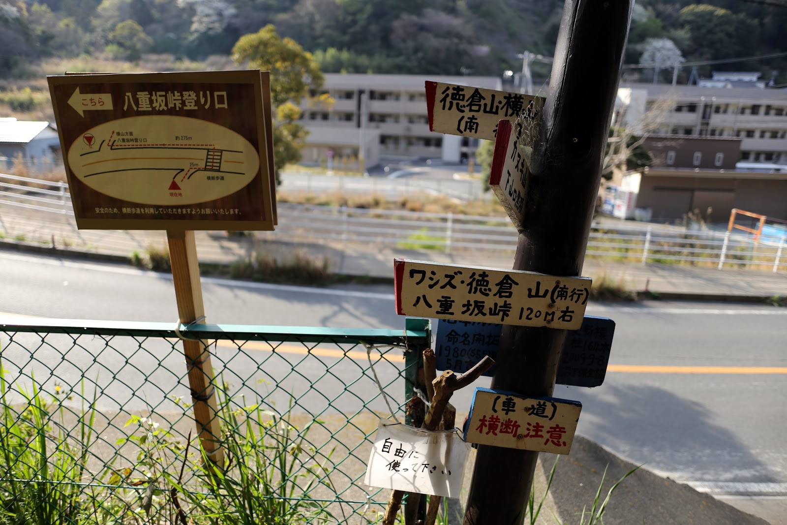 一旦車道に降りて 八重坂峠登り口に向かいます。